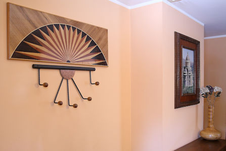 Complicata la realizzazione dell'intarsio con la tecnica del ricavato nella sovrapposizione delle varie lastronature effettuate in più passaggi