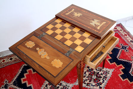 17 - Tavolo da gioco (larghezza cm. 48, lunghezza cm. 94, altezza cm. 55).